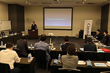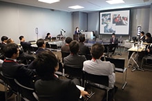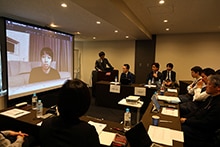 今回は、全国各地の海外留学予定者14名の応募をいただき、それぞれがモニター越しに8分間の英語プレゼンを行い、なぜ留学が必要なのか、そのためにコロナ禍中で何を準備したか、をアピールしていただきました。