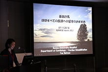 若手循環器医の登竜門であるSUNRIZE YIAで発表の機会をいただき、またご評価いただきましてありがとうございました。準備の過程で自分がなぜ留学を志すのかを明確にすることができ、当日は参加された先生方の情熱と勤勉さ、留学に対する向き合い方に大変刺激を受けました。身近に留学経験者がいない私が回り道しながらもこの場に立ち、ジャッジ及びプレゼンターの先生方と繋がりを持つことができたことは、大変幸運であり一生の財産となりました。モチベーションを高く保ち続け、精一杯留学を楽しみたいと思います。