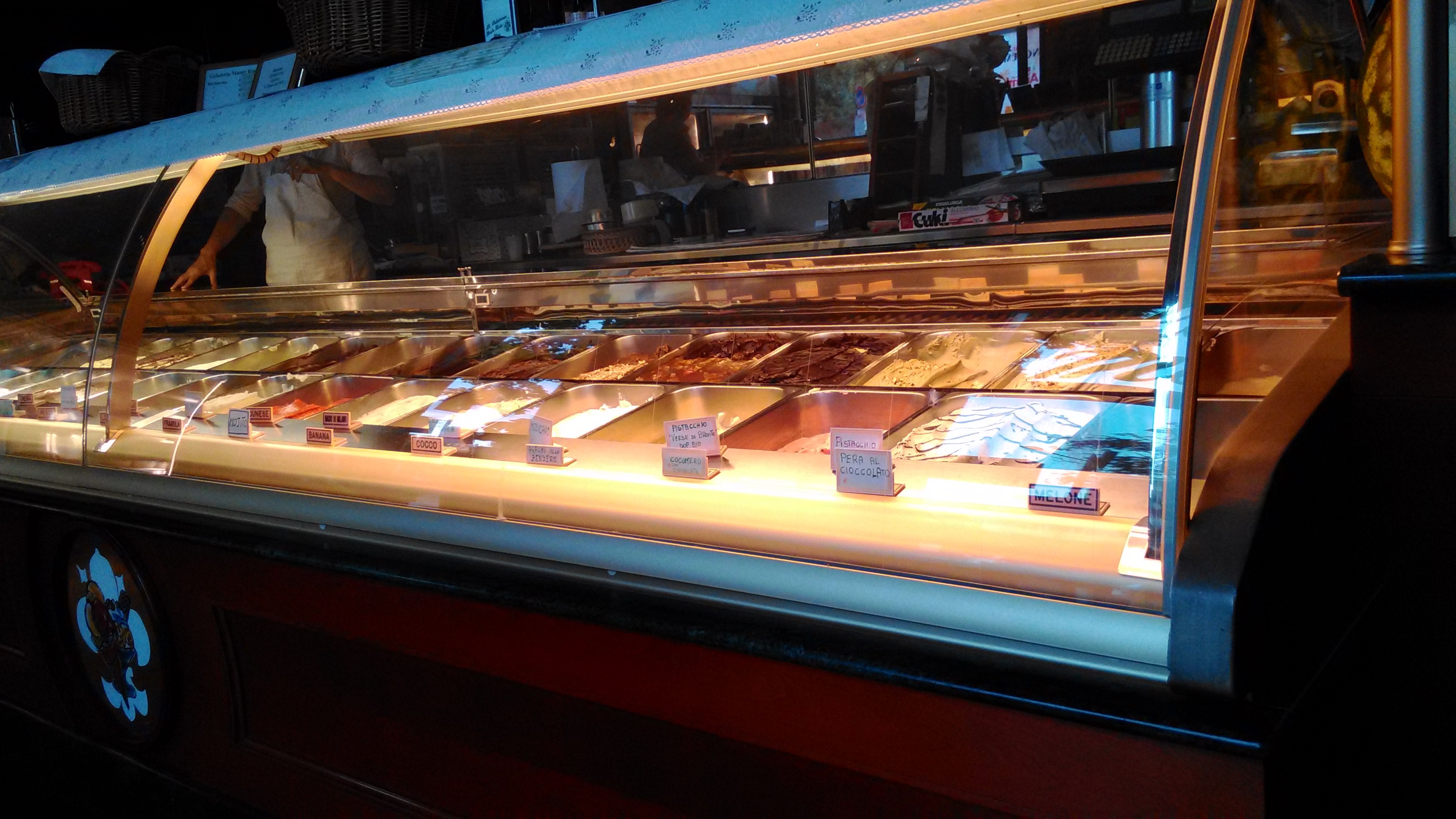 あとは、イタリアに来たら是非というのが、イタリアが発祥であるジェラートです。街のあちこちにあるジェラッテリアには、常に人が出入りしており、イタリア人は老若男女、年中ジェラートを食べているというイメージです。ちなみに国内年間消費量は一人辺り約7kgにのぼるようです。私もこちらに来てその美味しさを知り、日本で過去10年かけて食べたアイス以上の量のジェラートをこの半年で食べたと思います。ミラノに来ておそらく一番最初に見かけるのはドゥオーモの広場などで売っている屋台のジェラートですが、そこで買うのは我慢して、少し歩いて行けるきちんとしたジェラッテリアに行くことをお勧めします。通常は小サイズ(piccolo)で十分な大きさがあり約2.5ユーロで2味(ダブル)が選べます。素材を活かした季節のフルーツ味がオススメですが、特に夏季のメロンは絶品でした。(写真)家から徒歩1分のジェラッテリア