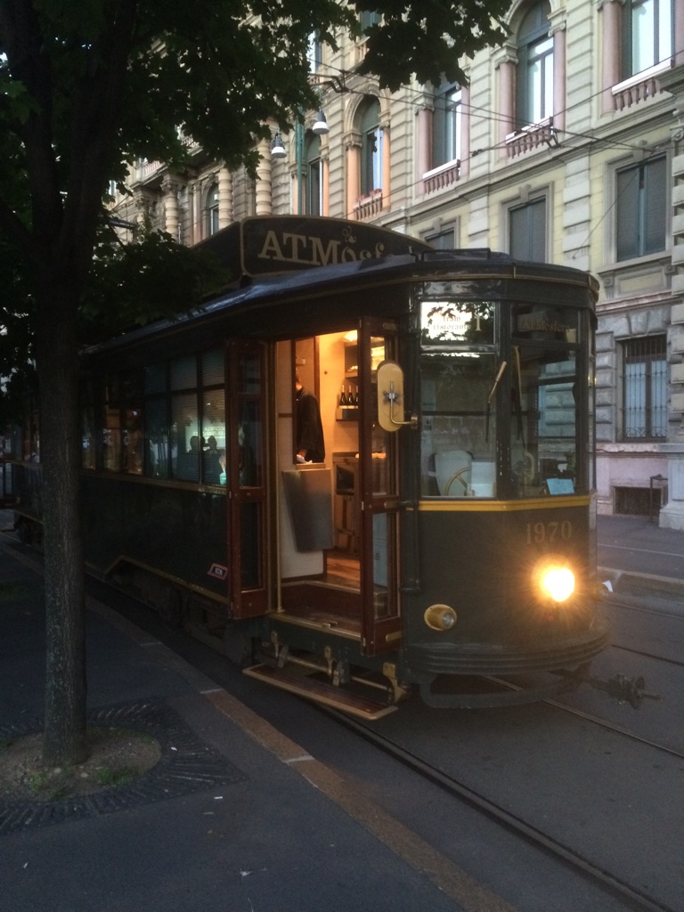 また、少し趣向を変えたい時に、トラムレストランというのがあります。夜8時頃からトラム(路面電車)に乗り、2時間程かけて街中を走りながら食事を楽しむというものです。かなり人気があり予約を取るのも難しいようですが、日本で大変お世話になった御夫妻がミラノに来られた際に、御一緒させていただく事が出来ました。最初は揺れで酔うのではと心配していましたが、ほとんど不自由を感じる事無く、また出てくる食事も決して簡易的なもので無く、しっかりした美味しいフルコースが出てきました。夜のミラノを回りながら食事というのも時にはいいものです。