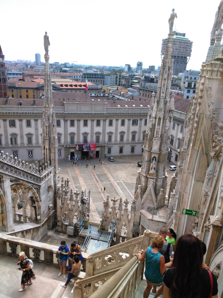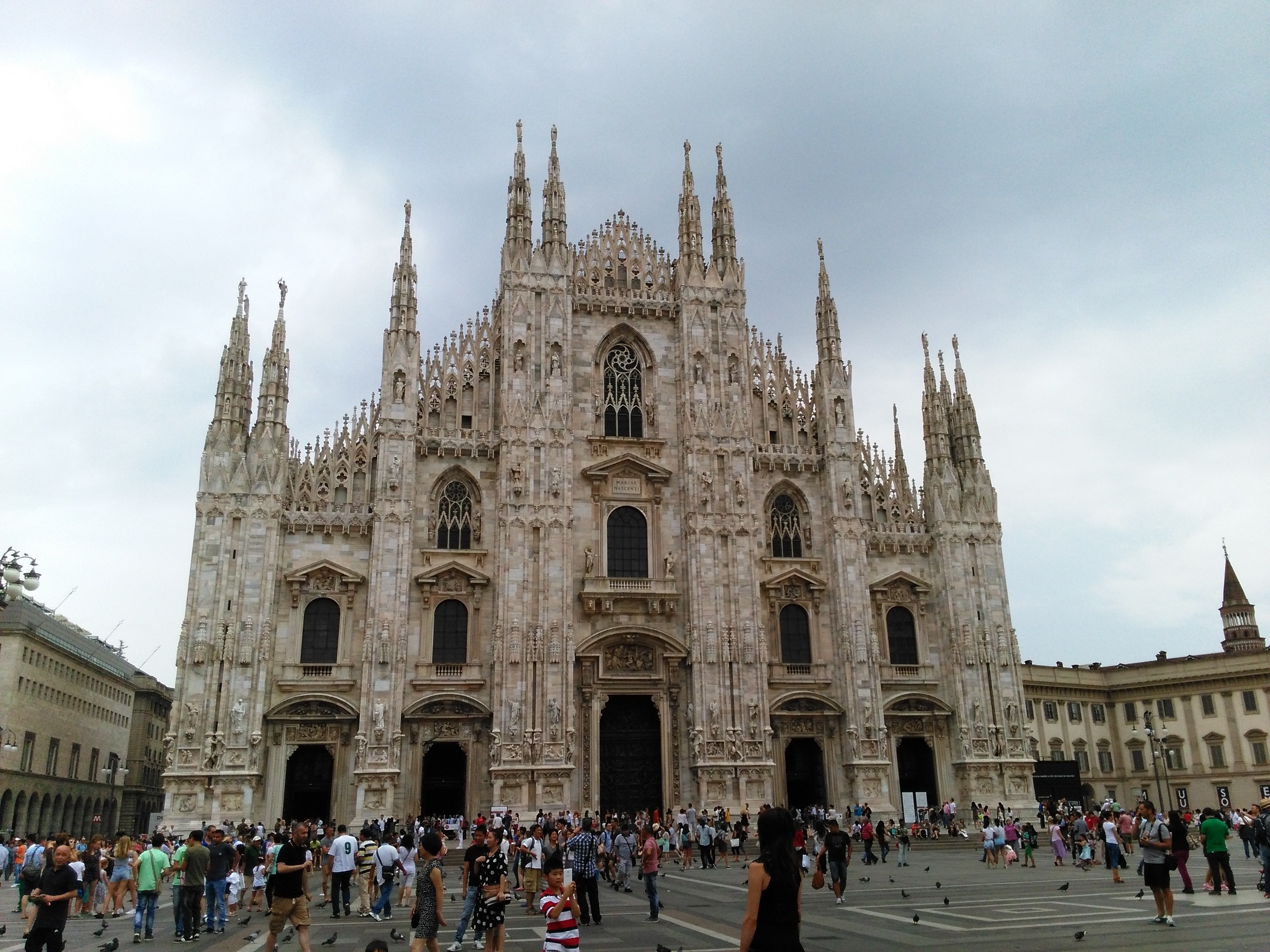 またそれと並んで有名なものがミラノ大聖堂(ドゥオーモ)になります。正面からの景観はもちろんのこと、内部もステンドグラスや彫刻などが並び壮大な空間となっています。またエレベーターや階段で屋上まで登ることができ、上からはミラノの街を一望できます。このドゥオーモは屋上に100本以上の尖塔があり、また外部全体で2000体以上の彫像が配置されており、登ることでそれらを間近に見ることもできます。