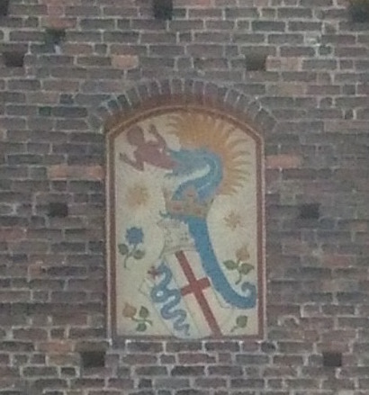 城壁にある‘人を飲み込む蛇’は13−15世紀にミラノを支配したヴィスコンティ家の紋章ですが、アルファロメオのエンブレムにも使われています。