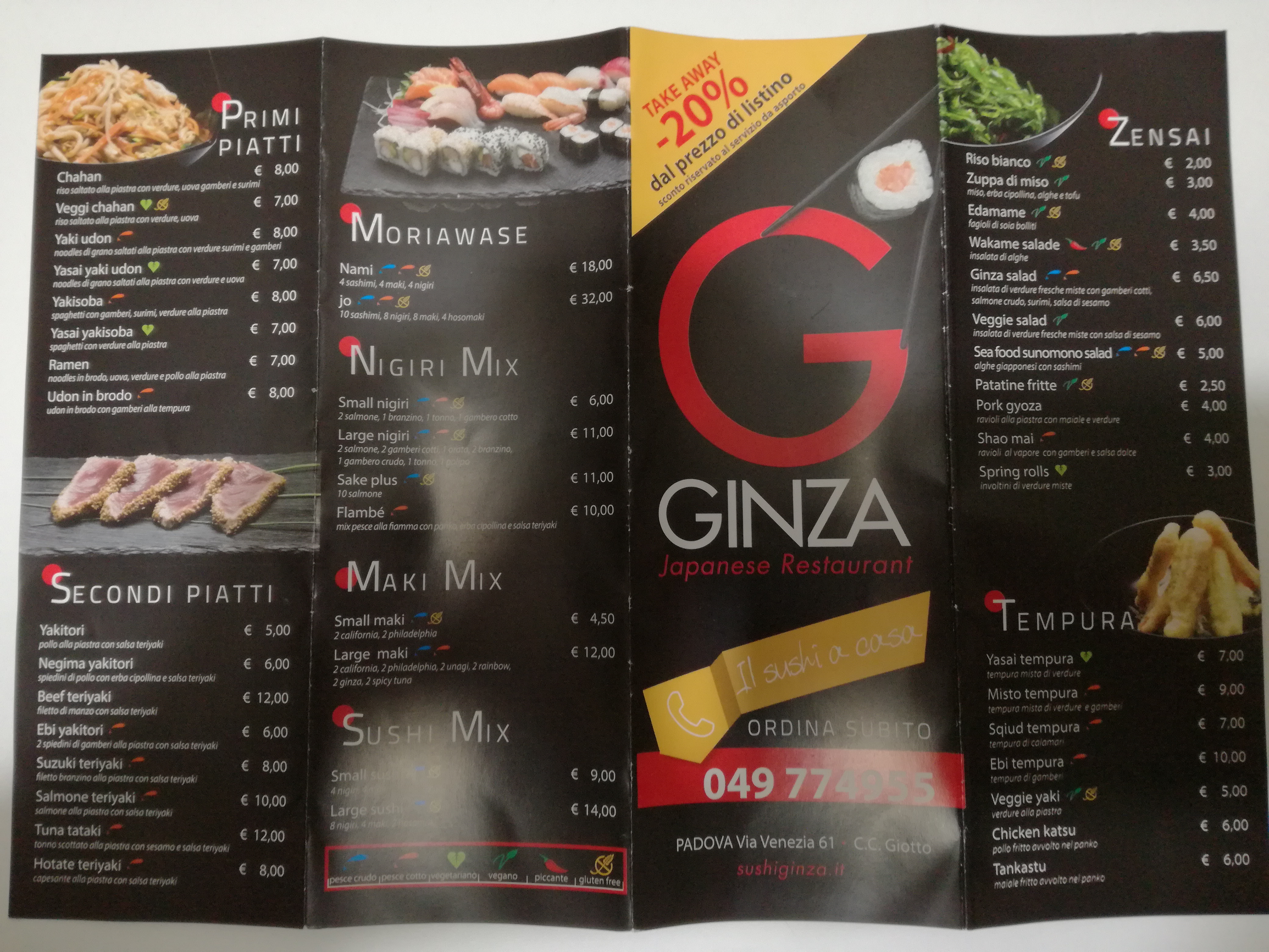 写真3, 4 日本食レストランのパンフと別の焼き鳥屋。このGINZAはオープンしたばかりだが人気がある。やきとり屋は教会の向かいにあって個人的にすごく違和感を感じる。