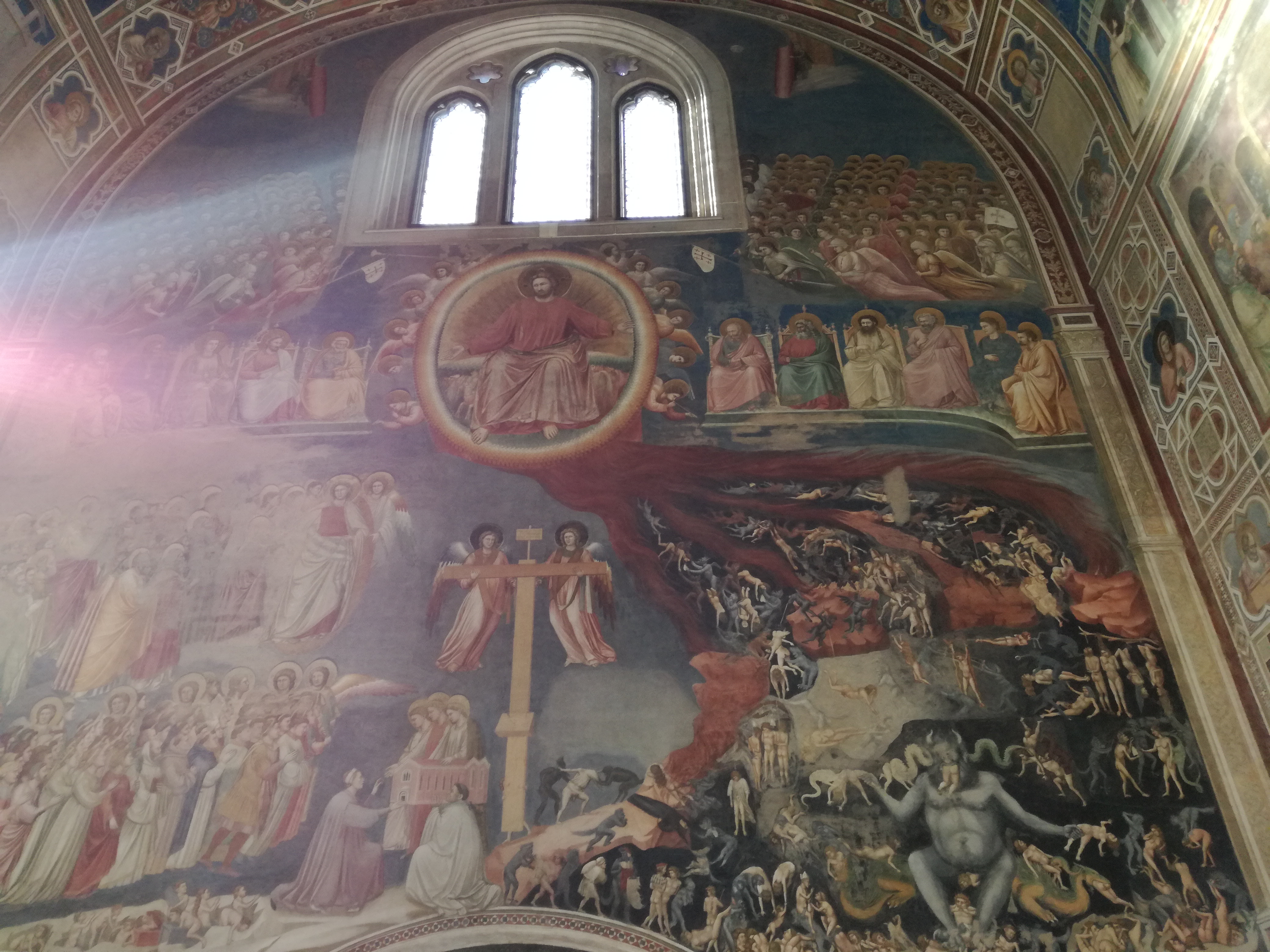 観光地として最も有名なのは何と言ってもスクロヴェーニ礼拝堂。金貸しの父親の罪滅ぼしにスクロヴェーニが礼拝堂を作り寄付をしたものでGiottoという画家が書いたフレスコ画がある。隣接する市の美術館も見応えがある。礼拝堂は保護のため外と中の気圧差(温度差?)を調節する必要があり、web上で予約を取る必要がある。