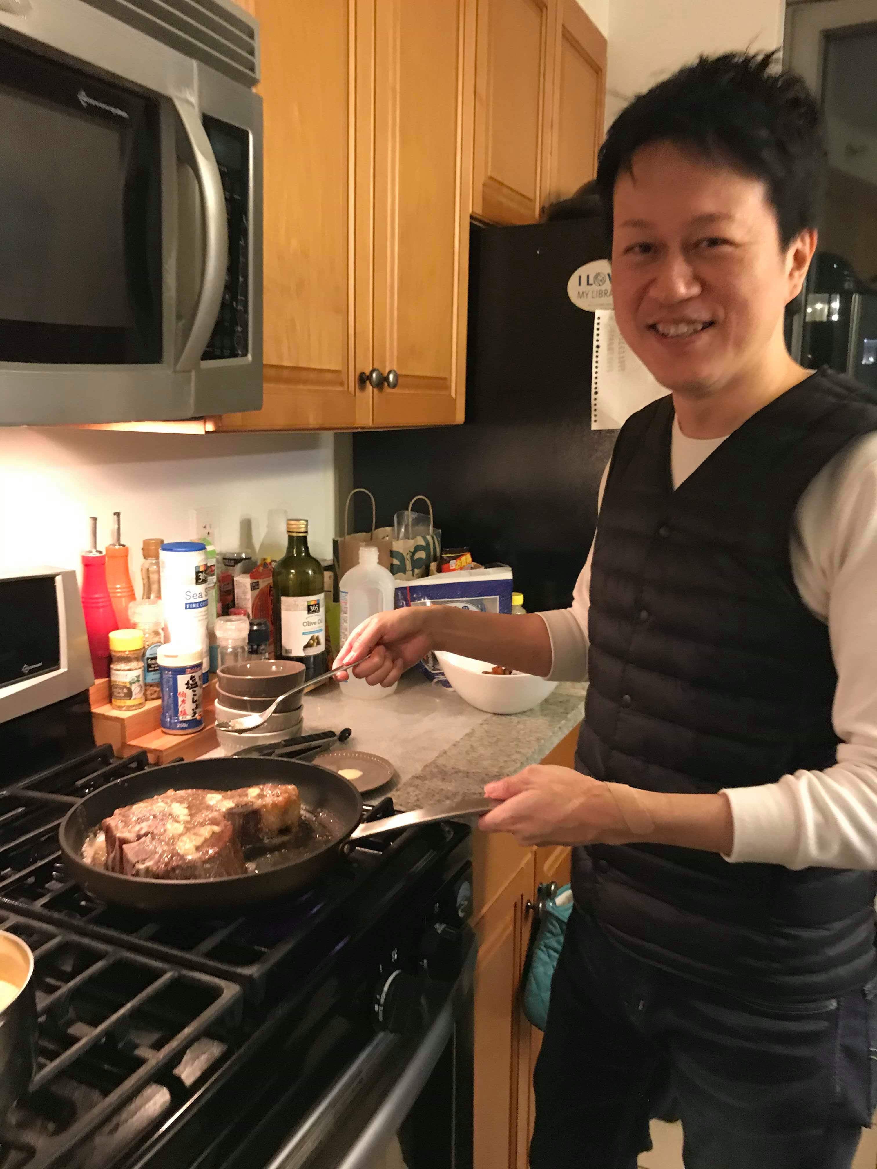 昨年のサンライズレポーターの川上先生がAHA2019の帰りにNYCに遊びに来てくれました。川上先生にステーキを振舞ったのですが、調理している際に川上先生が、是非SUNRISEレポート用に!と写真をとってくれました。