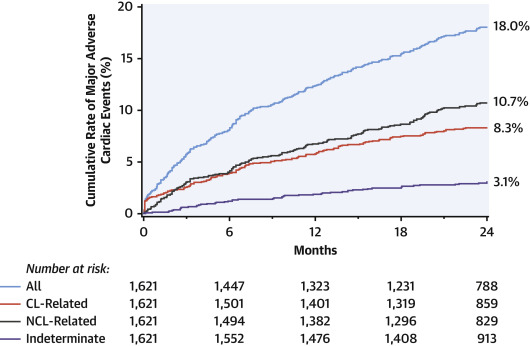 COLOR (Chemometric Observations of Lipid Core Plaques of Interest in Native Coronary Arteries Registry)に登録された1,999例のうち、PCIは1,621例で実施された。そのうちMACEは18.0%に発生した。NIRS-IVUS施行による合併症は9例(0.45%)に発生し、そのうち1例は病変周囲心筋梗塞、1例は緊急冠動脈バイパス術であった。