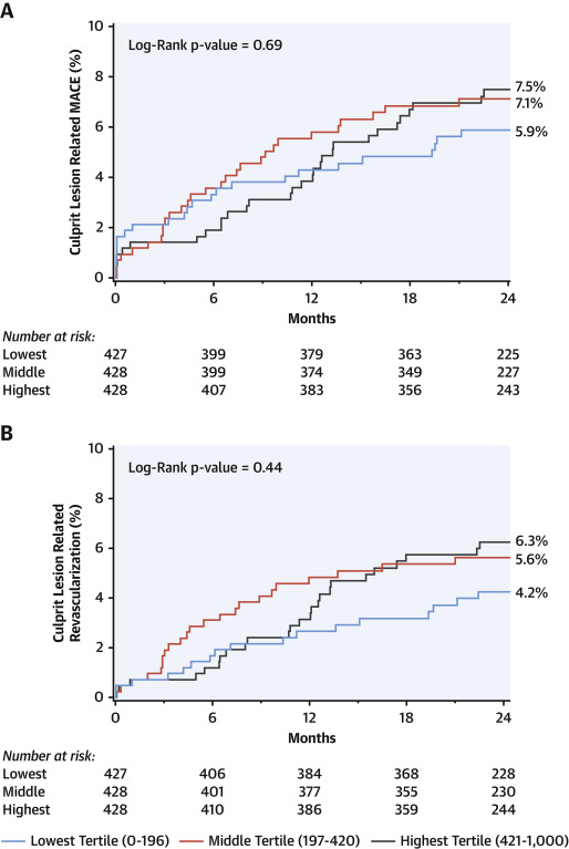 Figure 3. maxLCBI4mmを3群に分けて解析(0-196, 197-420, 421-1000)を行っても、MACEに優位は認めなかった。