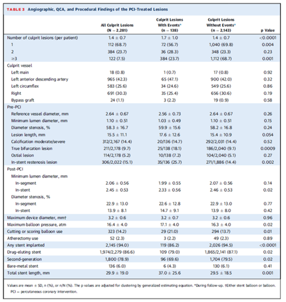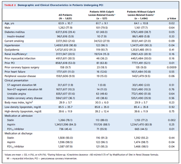 Culprit relatedではMACEが8.3%, 心臓死もしくは心筋梗塞が2.1%、進行性狭心症または不安定狭心症のための計画外の再灌流が6.9%に施行された。