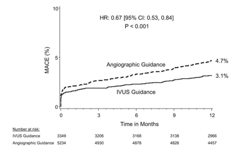 また、ADAPT-DES (5)、EXCEL試験(6)もCRFからの報告です。ADAPT-DES試験はPlatelet Activityに関する報告ですが、Sub studyでIVUSの有無によるMACEの差も注目されています。下の図のようにIVUSの使用によりHazard ratioが30%低下しています。