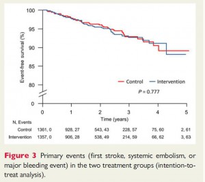 もちろん患者背景から使用している抗凝固薬も全く異なりますので(IMPACT試験ではワルファリン使用も含まれていた)、両者の単純比較はできませんが、Editorial commentaryの筆者はこの試験結果は十分考慮しなければならないと明記しています。