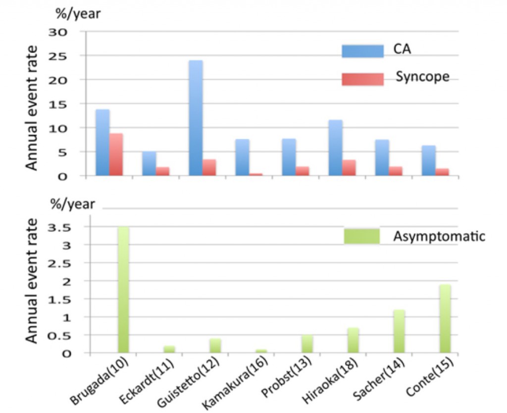 表2: Brugada症候群のイベント発症率(ガイドラインより抜粋)。