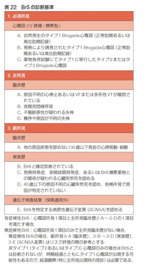 表1: Brugada症候群の診断基準(ガイドラインより抜粋)。