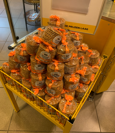 お土産の定番一番手は、ストロープワッフルというお菓子です。甘いカラメルソースを挟んだクリスピーワッフルです。オランダのスーパーではどこでも売っています。