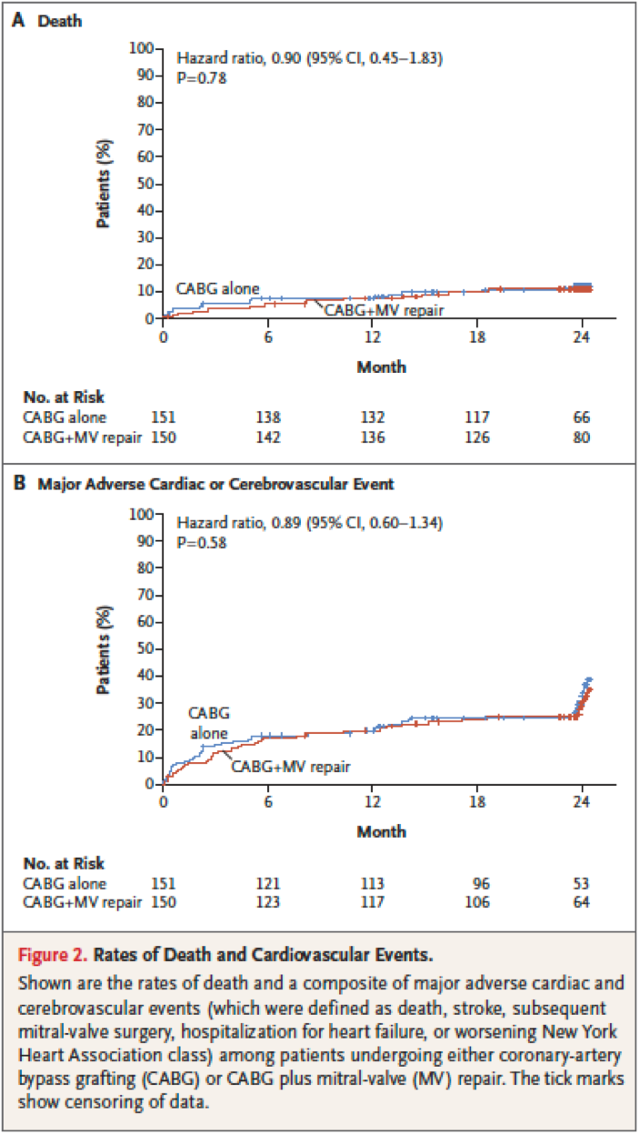 [6] Michler RE, et al. Two-Year Outcomes of Surgical Treatment of Moderate Ischemic Mitral Regurgitation. N Engl J Med 2016;374:1932-41.