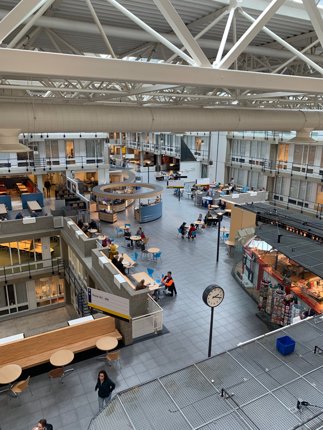 真ん中が吹き抜けで、やたら開放感があります。オフィスもなんだか明るい。ちょっとデカイ駅っぽい。