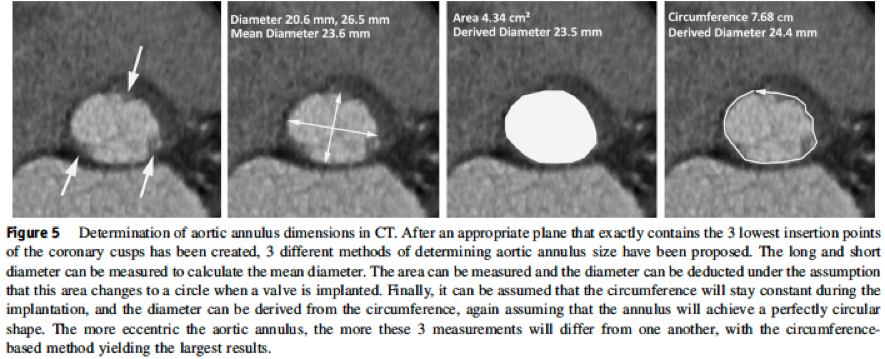 10. Koos R, Altiok E, Mahnken AH et al. Evaluation of aortic root for definition of prosthesis size by magnetic resonance imaging and cardiac computed tomography: Implications for transcatheter aortic valve implantation. Int J Cardiol. 2012;158:353-8.