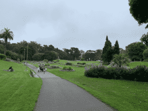 ゴールデンゲートパーク: 長さ5 km幅800 m敷地面積412ヘクタールの都市公園です。全米の都市公園の中で、ニューヨークのセントラル・パーク、シカゴのリンカーン・パークに次いで3番目に利用者が多いそうです。科学館、美術館、植物園、湖、バイソン放牧地、乗馬場、ポロフィールド、風車、日本庭園などがありサンフランシスコ市民の憩いの場となっています。週末には多くの人々で賑わいます (写真3)。