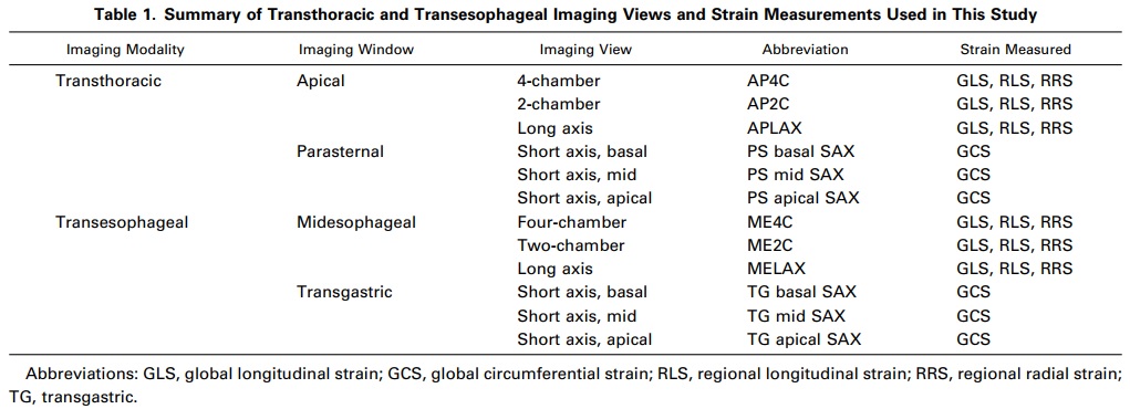 2) Carlo E. Marcucci, et al, (2012) “A Comparative Evaluation of Transesophageal and Transthoracic Echocardiography for Measurement of Left Ventricular Systolic Strain Using Speckle Tracking,” Journal of Cardiothoracic and Vascular Anesthesia 17, 17-25.