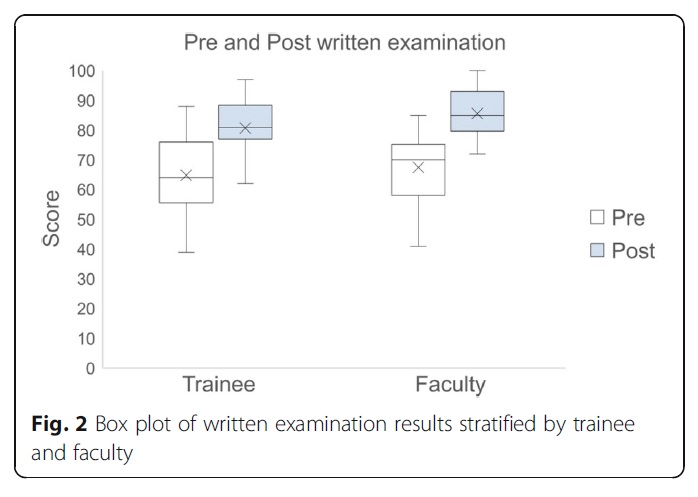 以上の内容は、参加者が受ける教育を統一・標準化することや、参加者のベースラインやトレーニング後の変化を評価することは、教育の効果を検討する研究を行うためには必須であるために著者たちが行ったことである。しかし、教育効果の研究に必須のことは、実は実際の医学教育の現場でも必須のことである。