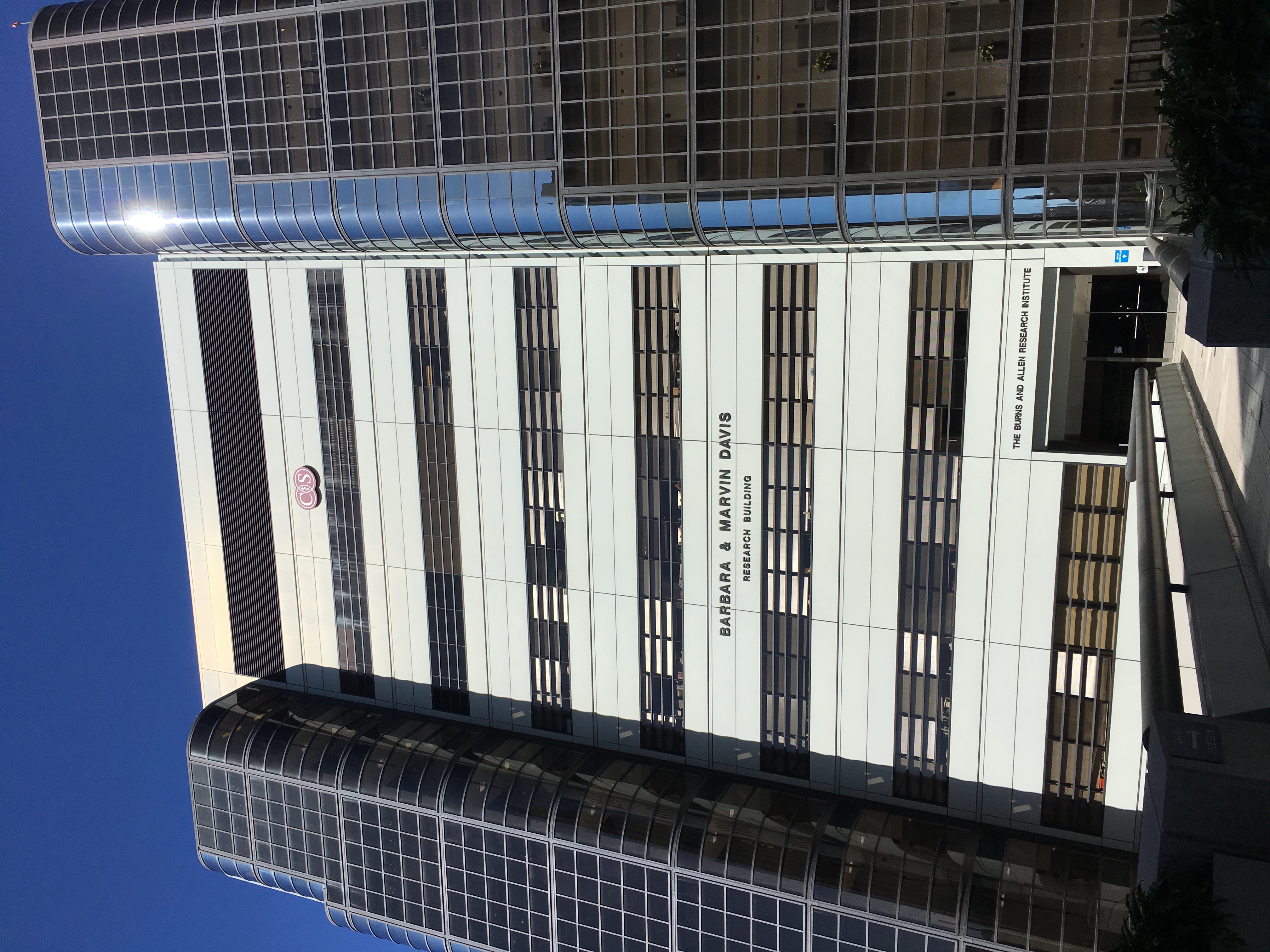 たくさんの研究ラボが集まるDavis Research Building。でかい。ラボはこの渡り廊下続きの同じフロア内で、入口にも近い一番いい場所。アメリカ?もしくはCedars?のラボは基本的にそのスペースを確保するために“テナント料”を払わなければならないとのことで、一番いい場所にあるMarbanラボは…つまり、そういうことです。
