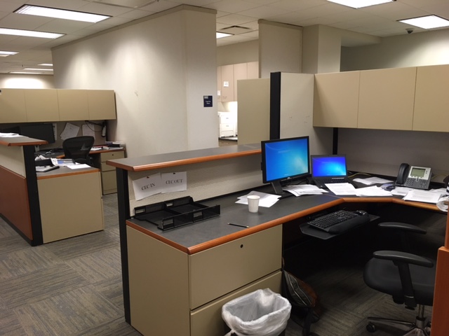写真:自分のcubicle(デスク)です。こんな感じでたくさん並んでます。