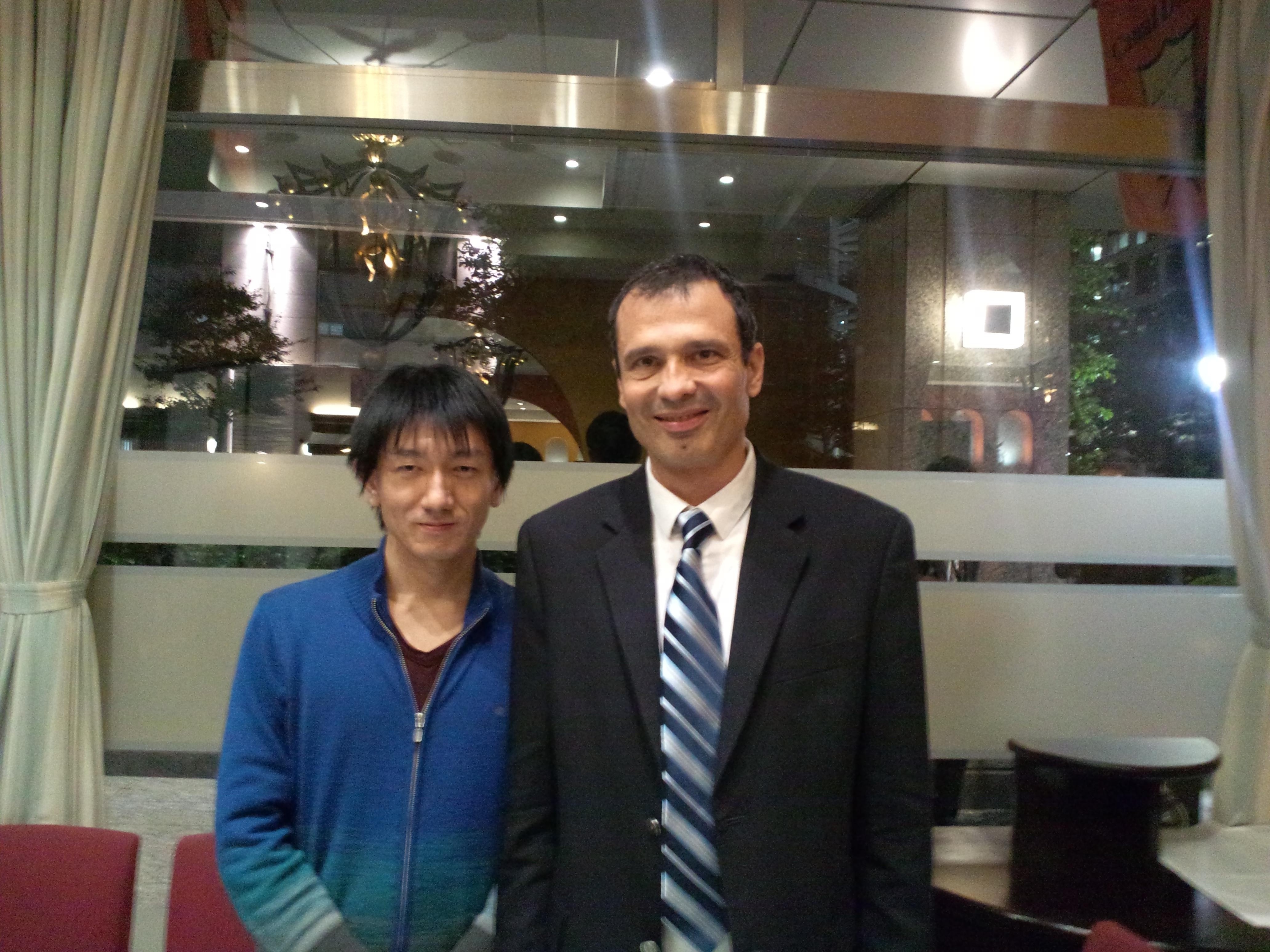 私が、留学先のボスとやりとりした会話はこれだけでした。これは、その時の写真です。はや5年前です。招聘されたauthorityを困らせてやろう、という若気の至りで話しかけた、というのが本音です。電気生理学のデの字も知らない若造に「留学したい」などと言われたら、世界的権威は困るに違いない。武勇伝を作るために話しかけたのです。ところが予想に反して、「留学はいつからだ?」と聞き返されてしまったのです。私は思いがけない展開に口ごもってしまったのですが、そんな私を見かねてか、「決まったら連絡してくれ」と言って名詞をくれました。後述する問題や心配事に対して解決策を見い出せず、優柔不断で時だけが過ぎ、毎年のように「留学は来年にしたい」と先延ばしのお願いをしてきましたが、ボスもその都度快く(?)了承してくれました。この時の口約束は5年後の現在も有効だったようで、今回留学するに至りました。若気の至りでやった悪戯が思わぬ結果につながったようです。余談ですが、ボスはこの写真を覚えていたようで掲載許可も得ました。