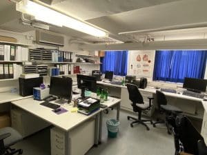 写真: 半地下にある医局兼解析部屋