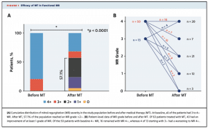 統計学的なlimitationは多いですが、侵襲的治療前に薬物治療を強化することの必要性を改めて示唆する結果だと思います。また、3ヶ月程度で一定のMR減少が得られる、というのもMitraClipなどの治療介入のタイミングの参考になるかもしれません。