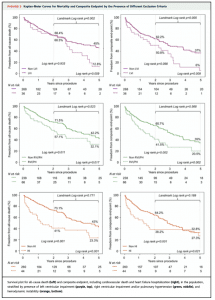 COAPT trialのpost-hoc analysisでも、MITRA-FR trialにentryしていたEROAが小さくLVEDVが大きい患者群(EROA≦0.3 cm2 かつLVEDV index≧96 ml/m2)ではMitraClip治療によって6分間歩行などの運動耐容能の改善は見られるものの、死亡・心不全入院の減少にはつながらなかったと報告されています(7)。