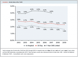 日本のJTVT registryの最新のデータでは30日以内の脳梗塞発症率は1.3%で、米国と比較するとさらに低めな水準です(JTVT 2019)。