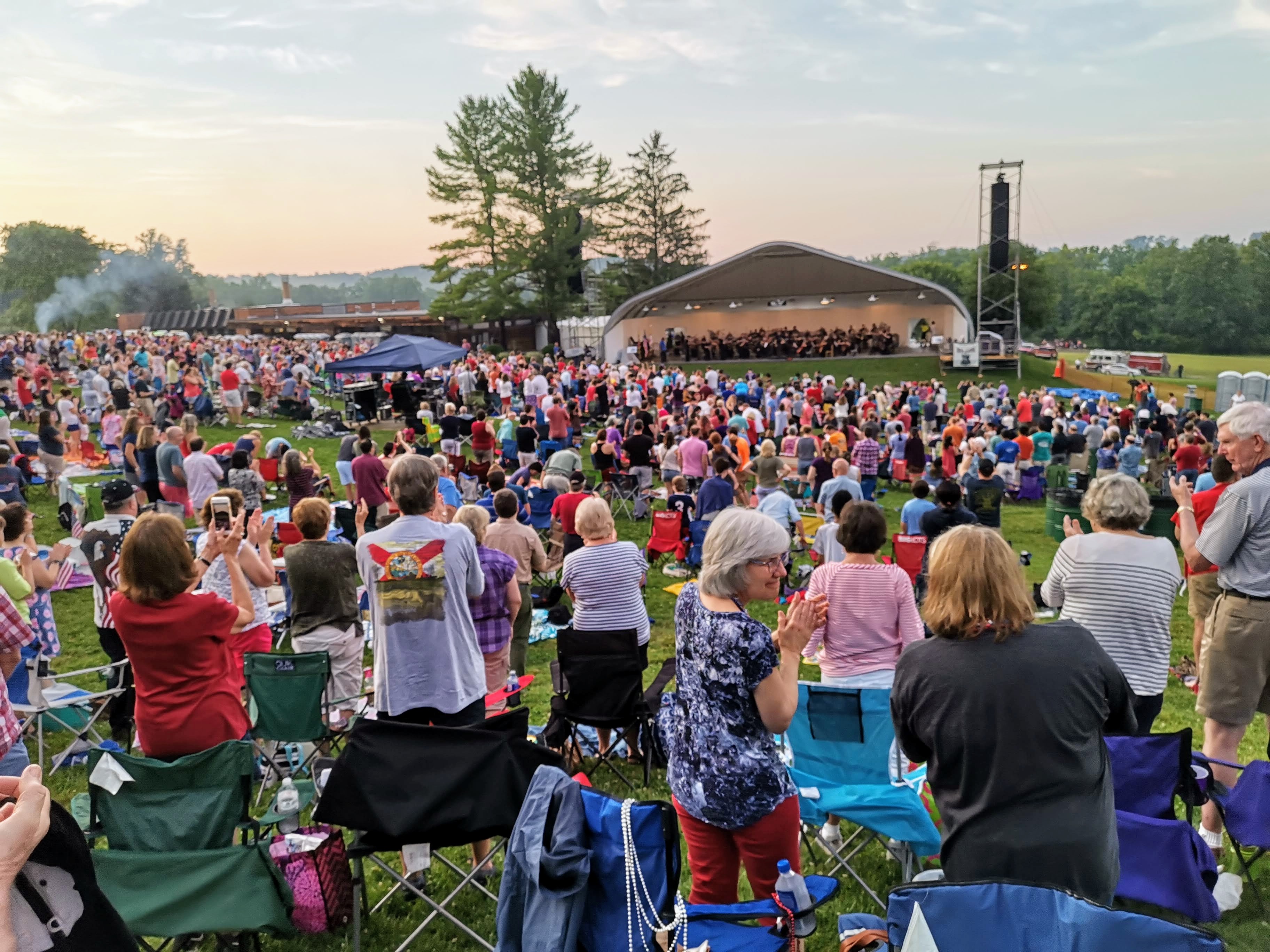 独立記念日を祝う野外コンサート アメリカ国歌を聞く人々