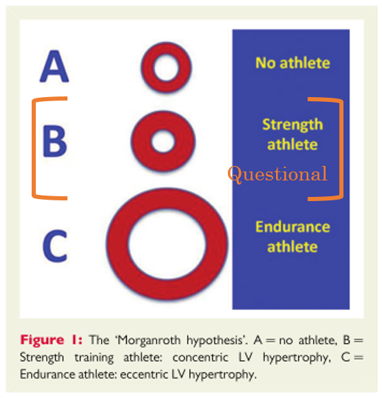 2016年に報告されたESCのRecommendation paperでは、Morganroth hypothesisのEndurance trainingについてはよく支持されるが、いくつかのスタディでStrength trainingにおいて期待されるような心形態を示さなかった、とコメントされている。[2] Resistence training群がEndurance trainingを全く行わないのは難しいことも理由のひとつとして挙げられている。