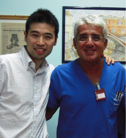 ヨーロッパと言っても多くの施設があり、どの施設でどのような手技が行われているか、また特徴・強みはどういった点か、などについては正直、情報不足でよくわからない状況であった。幸い、大学で数多くの僧帽弁症例に恵まれ、また経食道エコーもずっとやっていたので、MitraClipの治療については当初よりものすごい興味があり、TAVIだけでなくMitraClipにも強い施設に行きたいという気持ちが強かった。そんな折、2011年4月に参加したTCTAP@ソウルにて、Ted Feldman先生と話す機会を得たので、思い切って聞いてみた。「先生のところに行ってMitraClipの手技の見学に行ってもよろしいでしょうか?」(ヨーロッパの施設でMitraClipの強い施設を聞こうと臨んだものの、いざbig shotを目の前にして口から出た質問はこのようであった)すると全く予期せぬ答えが帰ってきた。「来てくれるのは構わないし嬉しいけれども、自分のところではclinical trialとして月に数例やるだけだから、MitraClipをたくさんやりたいのであればCataniaに行くといいよ」。