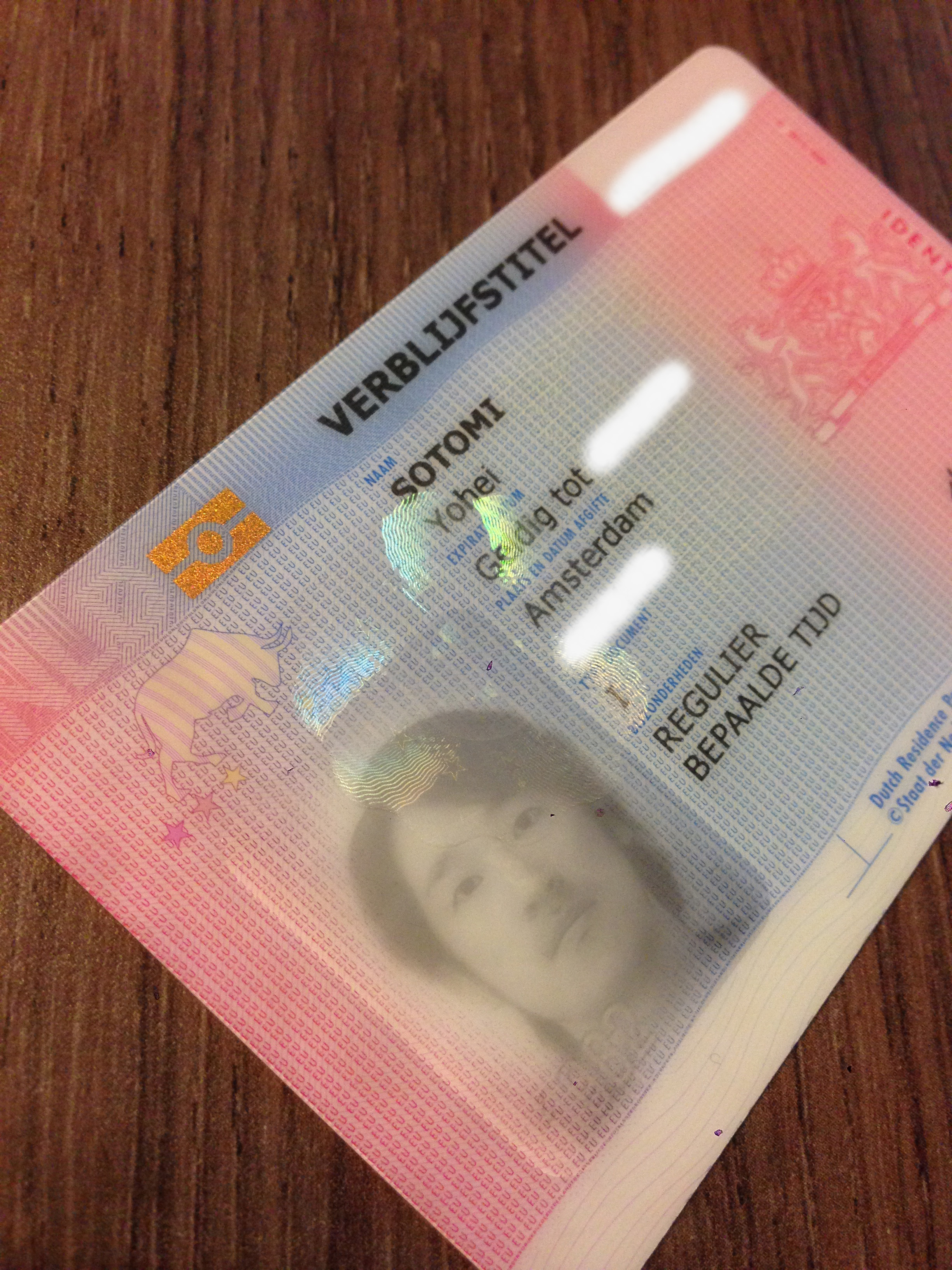 さらに待つこと数週間で、ようやくHospitality agreement等の書類をゲットし先のアポスティーユ付き戸籍謄本と合わせて、オランダの入国管理局(IND)に行き滞在許可の申請を行いました。最終的に、観光ビザで滞在できる3ヶ月ギリギリまでかかって、ようやく下記のような滞在許可証をゲットしました。顔写真入りのカードになっています。